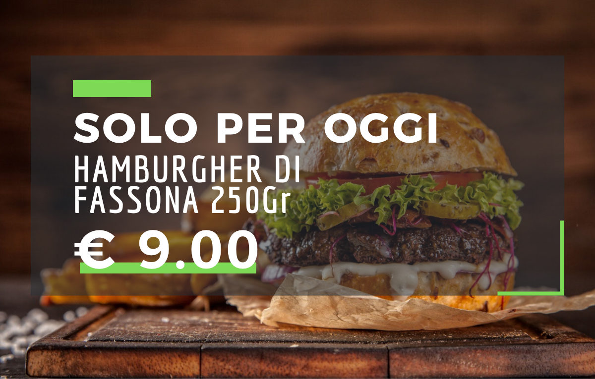 Pane al latte con sesamo, fassona 220g**, insalata, pomodoro, cipolla, patatine fritte, verdure grigliate, cipolla